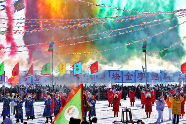 The 23rd Ice and Snow Fishing and Hunting Cultural Tourism Festival opened at Chagan Lake in Jilin on Saturday. [Photo by Jiang Dong/chinadaily.com.cn]