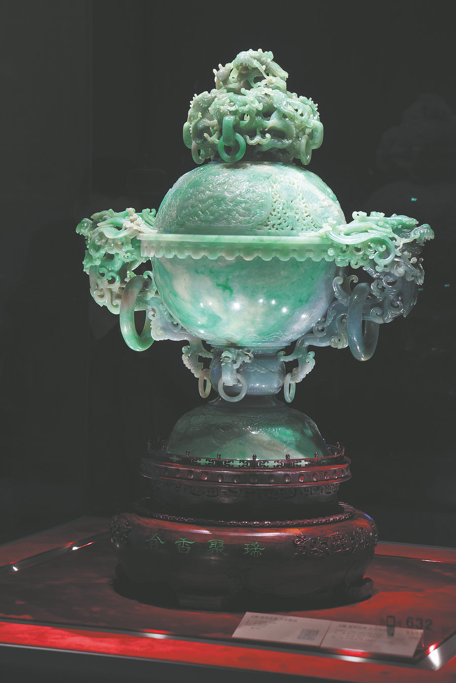 This fourth piece is made of the best-quality jadeite among these "national treasures", whose materials stem from one raw stone, Yang says.