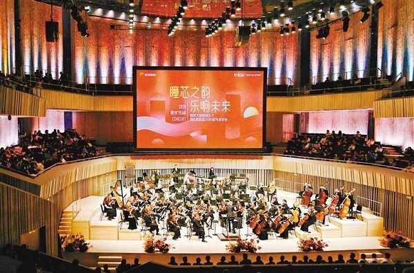 On Dec 30, the concert hall of Xi'an Grand Theater lit up its facade with dazzling lights, drawing crowds to the 2025 New Year Concert of Xi'an High-tech Industries Development Zone.