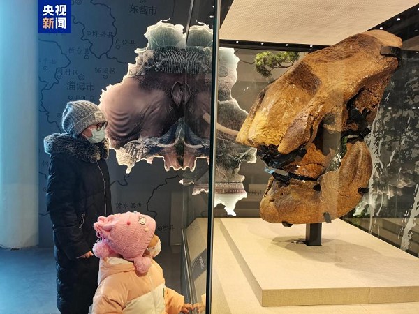 Visitors are captivated by the Weifang Elephant Fossil Exhibition. [Photo/cctvnews]