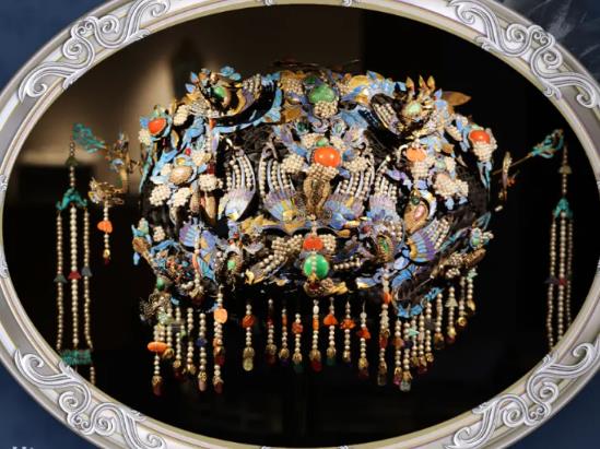 Phoenix crown inlaid with kingfisher feathers, Qing Dynasty (1644-1911), from the collection of the Inner Mongolia Museum [Photo/Official WeChat account of Guangdong Museum]