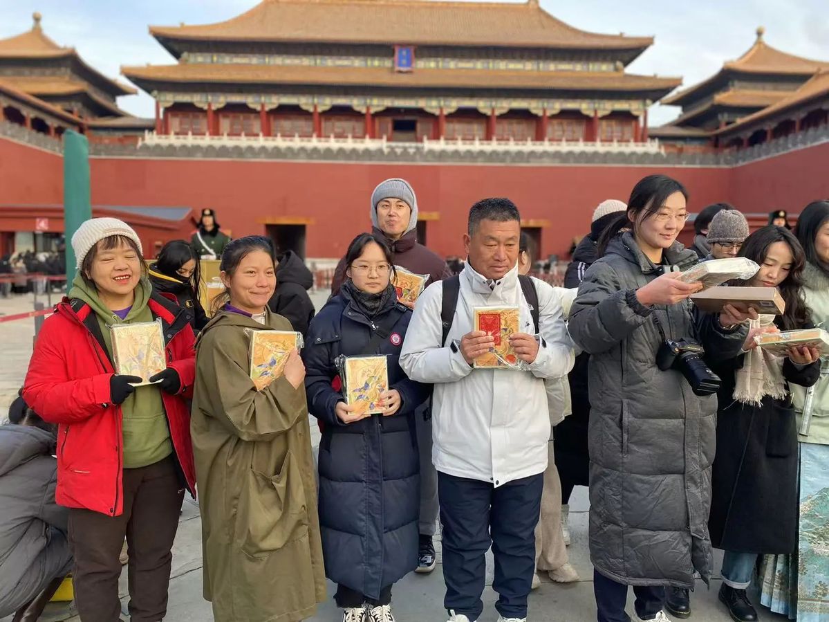 Visitors receive a New Year gift – the 2025 Palace Museum Calendar. [Photo/Official WeChat account of the Palace Museum Publishing House]