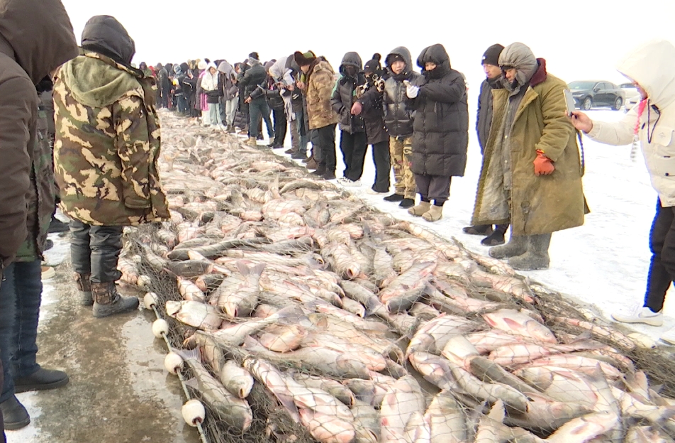 Winter fishing season begins at Yueliangpao Reservoir in Jilin