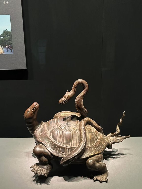 A bronze tortoise entwined by a snake (an image of Xuanwu, the Taoist deity of the North) on display at Hubei Provincial Museum [Photo/provided to chinaservicesinfo.com]