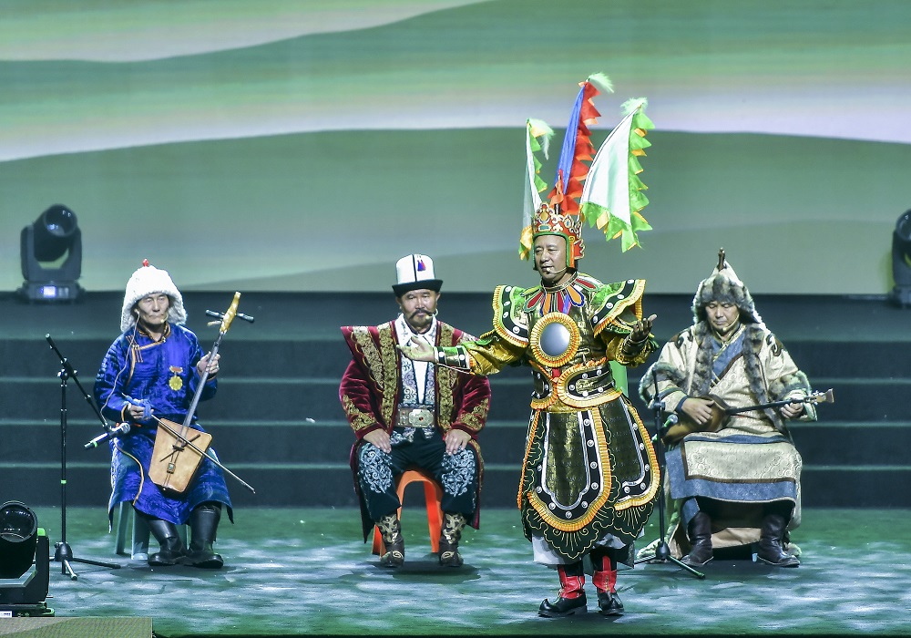 Inheritors of Jangar, Gesar and Manas epics perform together. [Photo/IC]