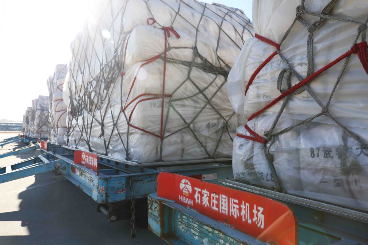 A cargo charter flight loaded with approximately 24 metric tons of supplies for the earthquake-stricken Xizang autonomous region departed from Shijiazhuang, the capital city of Hebei province, around noon on Thursday, according to Shijiazhuang Zhengding International Airport.