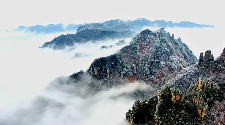 Snowfall in the Wulingyuan Scenic Area of Zhangjiajie in Hunan province created a beautiful winter wonderland for travelers. [Photo provided to chinadaily.com.cn]
