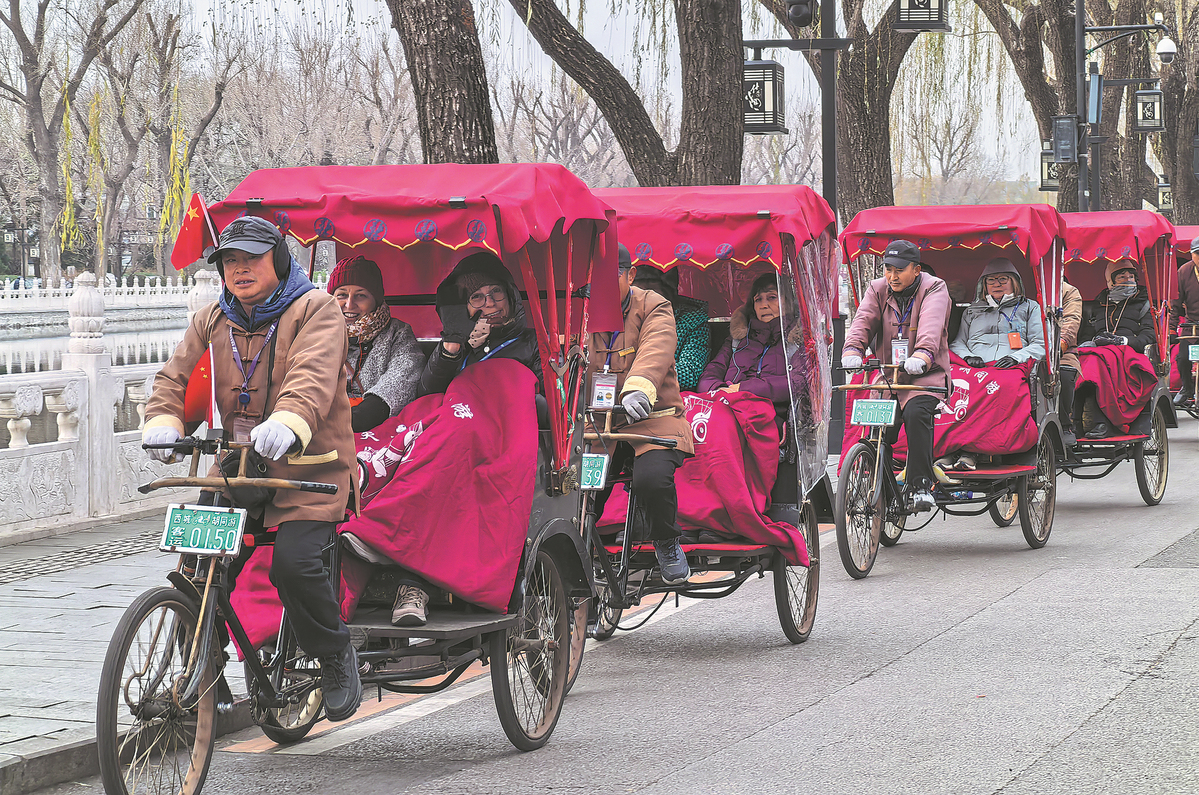 Foreign visitors take guided tricycle tours in Beijing on Dec 12. JU HUANZONG/XINHUA