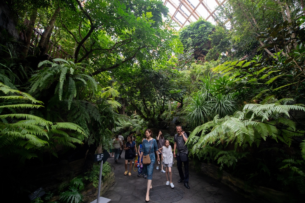 The largest of the three domes is the Tropical Rainforest Pavilion, which has a typical tropical rainforest environment with more than 1,500 kinds of tropical plants. The middle-sized one is the Desert Plants Pavilion which features plants from America, Africa and Australia – while the smallest one displays plants and flowers in different seasons.