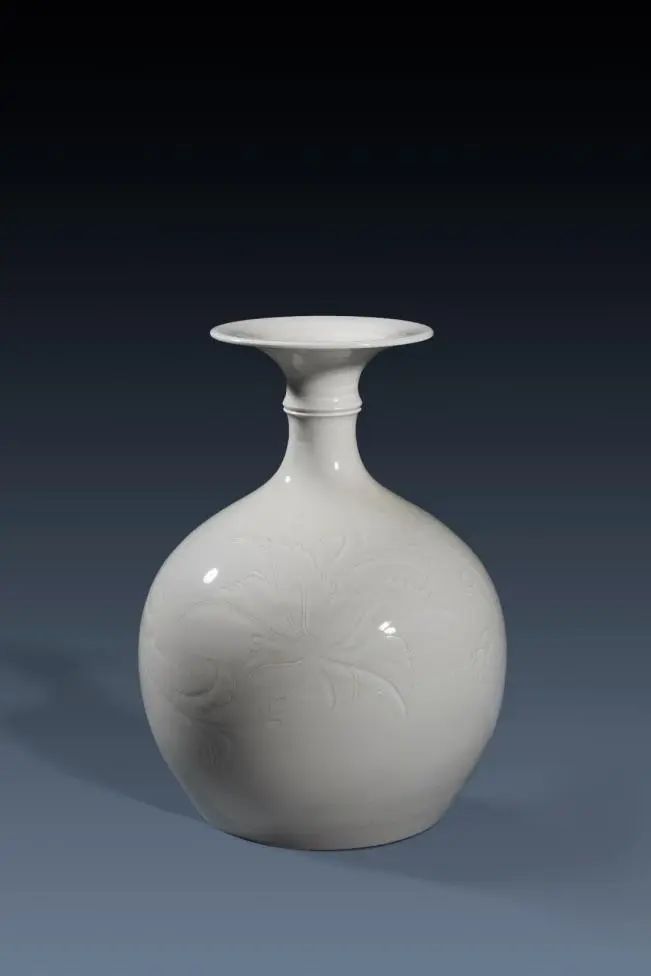 White-glazed vase incised with floral motifs, Ding ware, made by contemporary artist Chen Wenzeng [Photo/Official WeChat account of Hebei Museum]