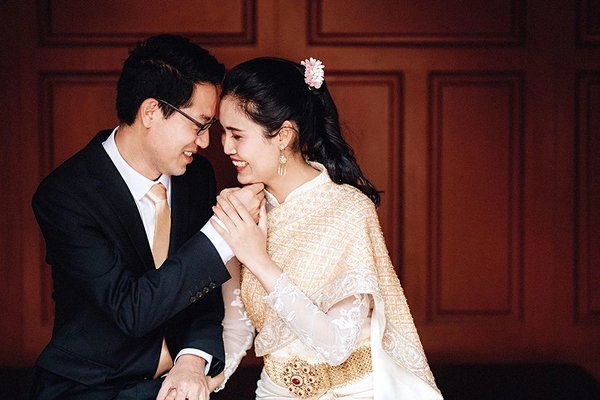 Nitinun Chomchuen and Sun Jianpeng hold a ceremony in Thailand to celebrate their wedding.