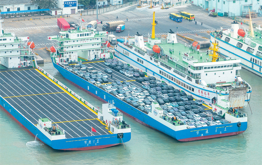The number of passenger cars traveling to and from the island province via the Qiongzhou Strait is expected to reach 773,000 trips during the 2025 Spring Festival travel rush, showing a 2.7 percent year-on-year increase. Meanwhile, 390,000 trips of freight trucks are projected to traverse the Qiongzhou Strait to and from the tropical island, indicating an annual growth of about 6.2 percent, according to a news conference held in Haikou on Dec 20.