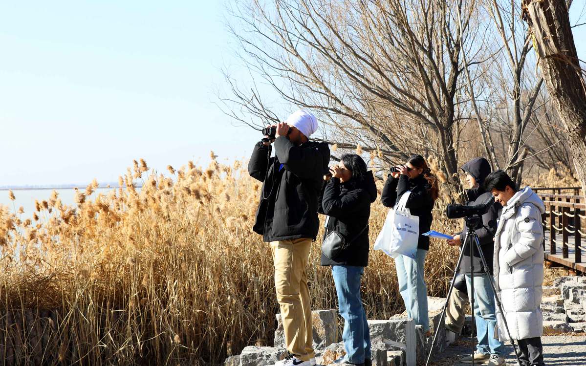An international bird-watching cultural exchange event was held on Wednesday at Hengshui Lake in North China's Hebei province, attracting over 100 participants, including international bird experts, students, photographers and tourists.