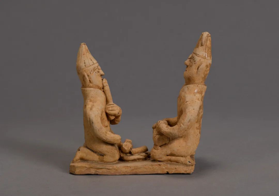 Celadon music figurines sitting opposite, Western Jin Dynasty (265-316), unearthed from the tomb in Jinpenling, Changsha in 1958 [Photo/Official WeChat account of the Hunan Museum]