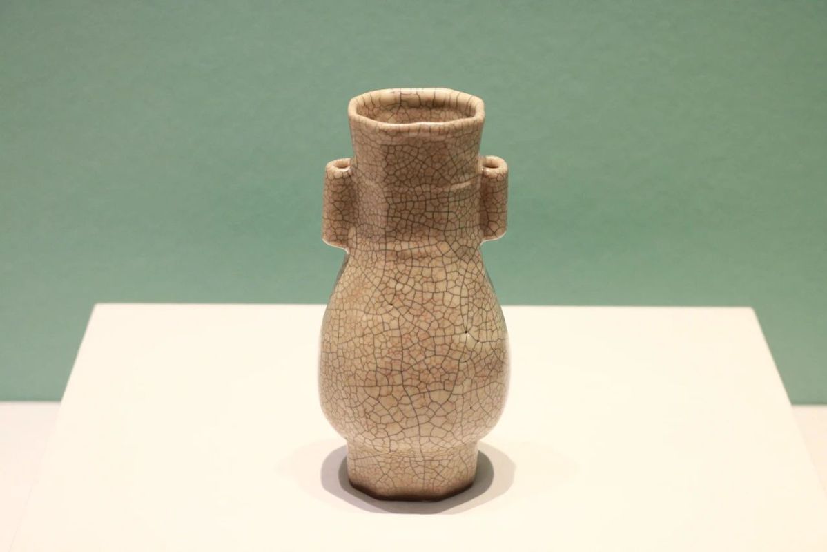 Beige-glazed vase with two ears, Ge ware, Song Dynasty (960-1279), from the collection of the Palace Museum [Photo/Official WeChat account of Hainan Museum]