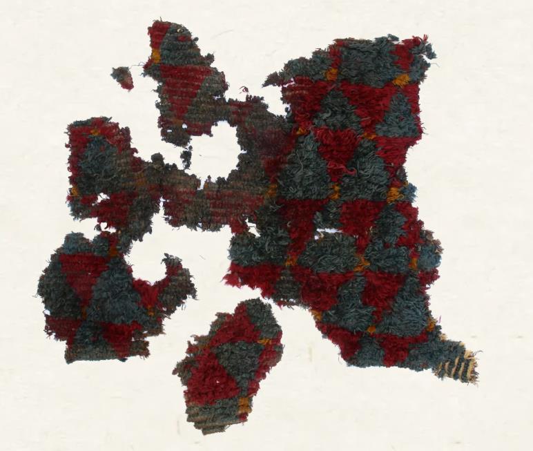 Fragments of a plush carpet with triangle motifs, Western Zhou Dynasty (c.11th century-771 BC), from the collection of Turpan Museum [Photo/Official WeChat account of Hunan Museum]