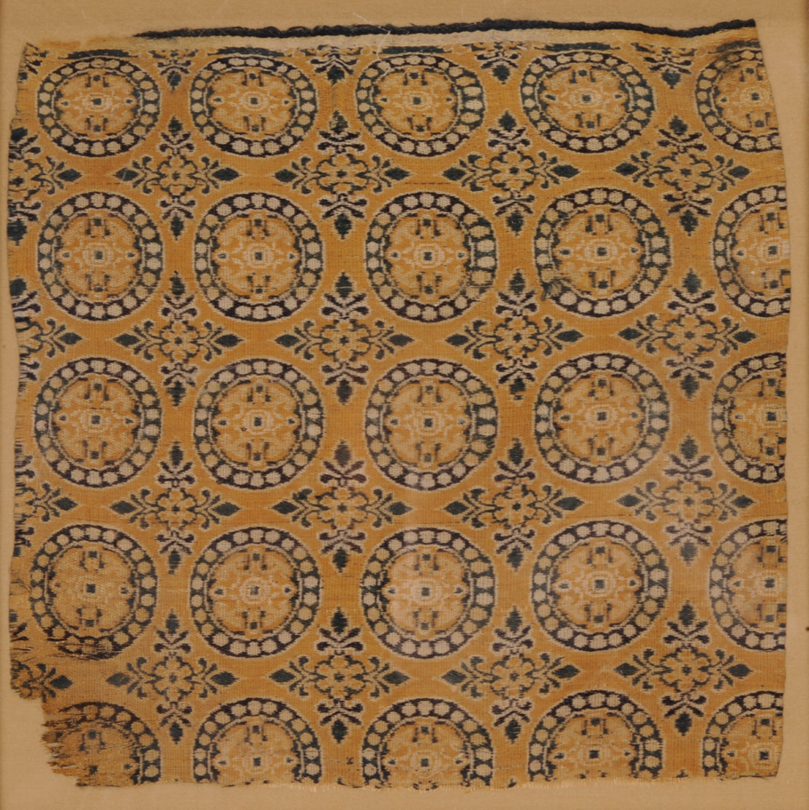 Yellow brocade with bead-surrounding-flower motifs, Tang Dynasty (618-907), from the collection of Xinjiang Uygur Autonomous Region Museum [Photo/Official WeChat account of Hunan Museum]