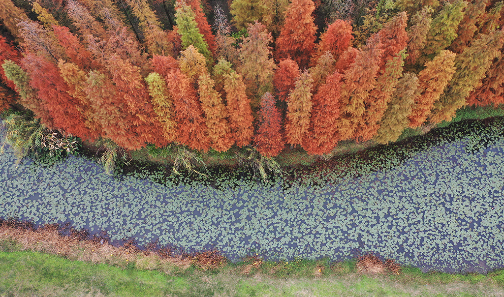 In winter, the dawn redwood forest in the Aixi Lake Wetland Park, Nanchang city, East China’s Jiangxi province looks like a colorful oil painting from a bird’s eye view. The dawn redwood trees add bright colors to the cold weather and bring vitality to the city. What’s more, the lush dawn redwood trees blot out the sun and resemble torches, creating a solemn atmosphere broken by bright lights. Sitting on the green grass and appreciating the graceful red dawn redwood trees will intoxicate you with beauty.