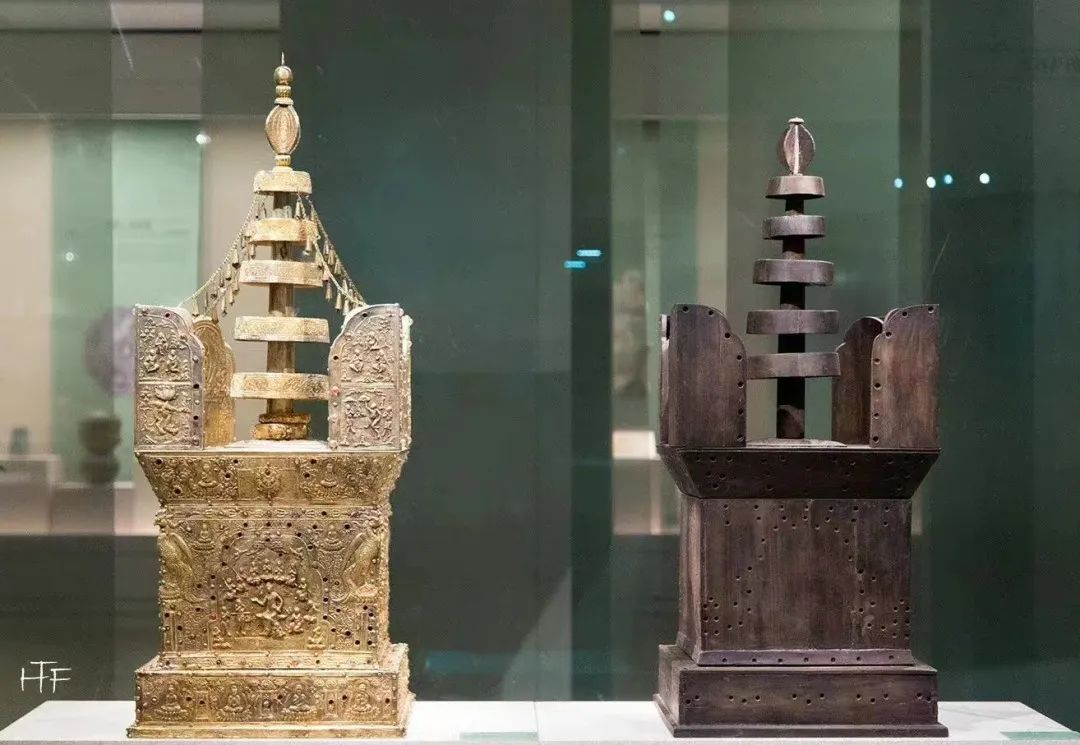 Gilded silver Ashoka pagoda and its wooden frame, Northern Song Dynasty (960-1127), from the collection of the Nanjing City Museum [Photo/Official WeChat account of the Zhejiang Provincial Museum]