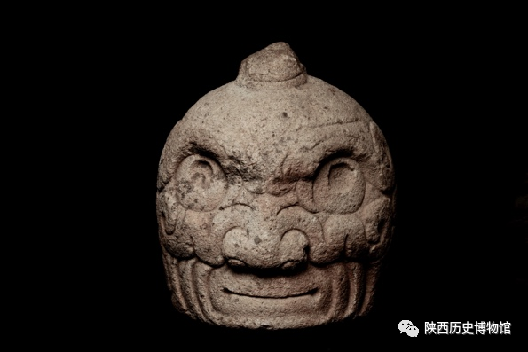 Stone carved head statue with a tenon, Chavin Culture (c. 1,300-500 BC) [Photo/Official WeChat account of the Shaanxi History Museum]
