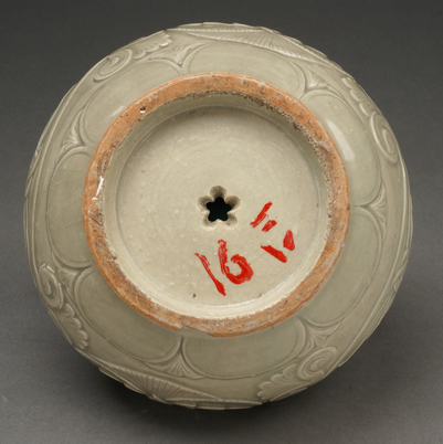 Detail of the five-petal-plum-blossom-shaped hole of the celadon pot [Photo/Official WeChat account of the Shaanxi History Museum]