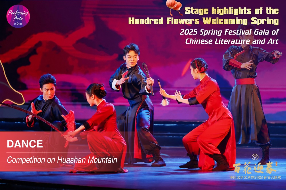 The thrilling dance Competition on Huashan Mountain at the Hundred Flowers Welcoming Spring: 2025 Spring Festival Gala of Chinese Literature and Art seamlessly combined dance and martial arts, showcasing the incredible skills of Chinese top performers in an electrifying showdown. A masterpiece of strength and artistry!