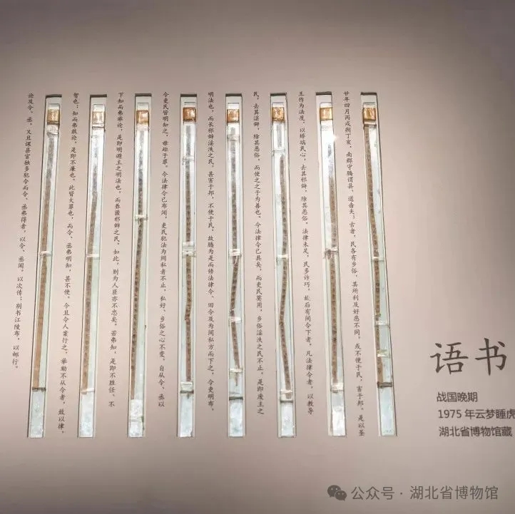 Bamboo and wooden slips on display at the Hubei Provincial Museum [Photo/Official WeChat account of the Hubei Provincial Museum]