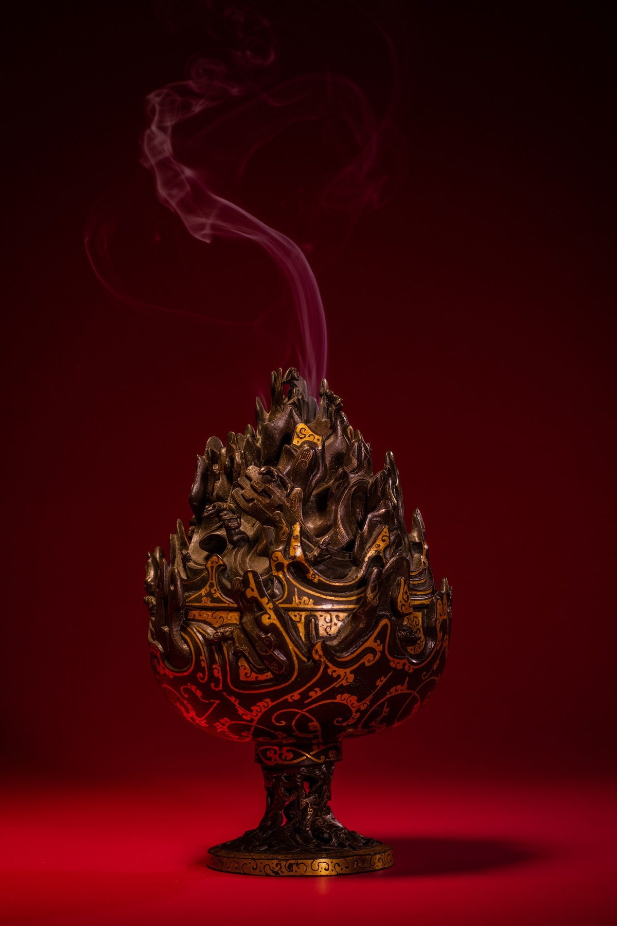 The photo shows Boshan-style Bronze Incense Burner Inlaid with Gold, one of the exhibited relics at Hebei Museum, in Shijiazhuang, Hebei province. [Photo provided to chinadaily.com.cn]