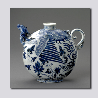 Check out this rare Yuan Dynasty (1271-1368) Jingdezhen ware! The blue-and-white flattened pot features a phoenix head-shaped spout with a curling phoenix-tail handle, with the body, including its wings, beautifully depicted in underglaze blue paint.