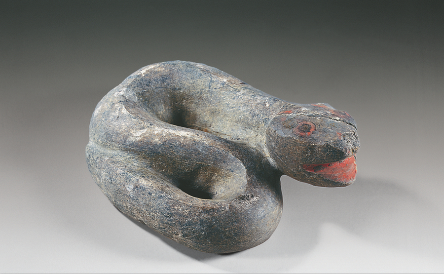 Besides the Central Plains,in the culture of ancient Shu, a state in southwestern China that lasted for more than a millennium before its fall in the fourth century BC, people had a similar understanding of the snake’s role as a messenger linking humans and the gods.