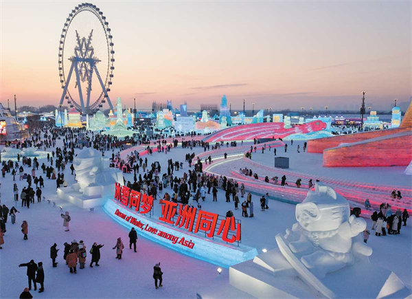 The 26th Harbin Ice and Snow World covers a total area of 1 million square meters and uses 300,000 cubic meters of ice and snow. The park replicates iconic landmarks from the 45 countries and regions of the Olympic Council of Asia in ice and snow. It attracted over 1 million visitors in the first 20 days following its official opening on Dec 21.
