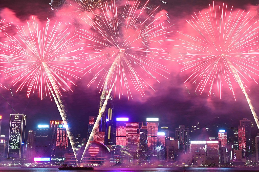 Fireworks light up Victoria Harbour on the second day of the Chinese New Year of the Snake in Hong Kong on Jan 30, 2025. [Photo/VCG]