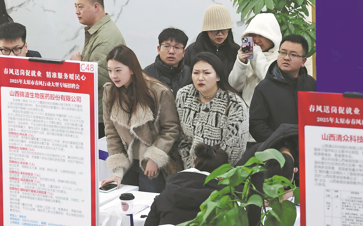 In Taiyuan, capital of Shanxi province, a large-scale job fair was held on Wednesday, with more than 300 companies offering over 8,000 job positions. The event also featured livestreamed company presentations, allowing job seekers to learn about corporate culture and work environments in real time.