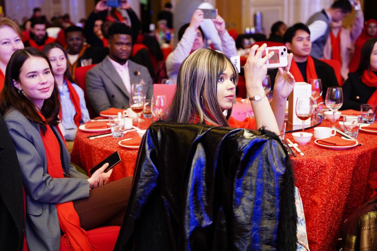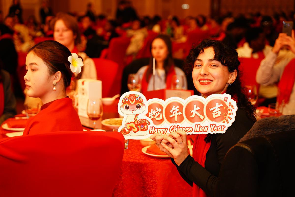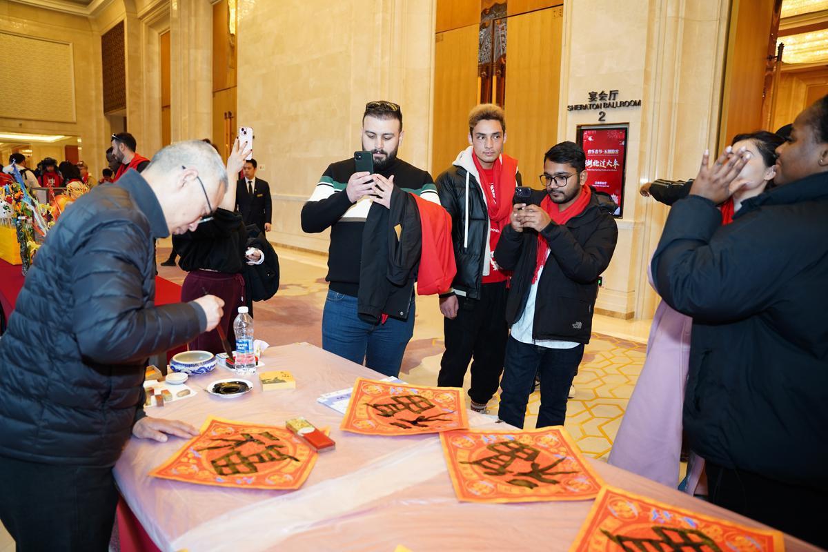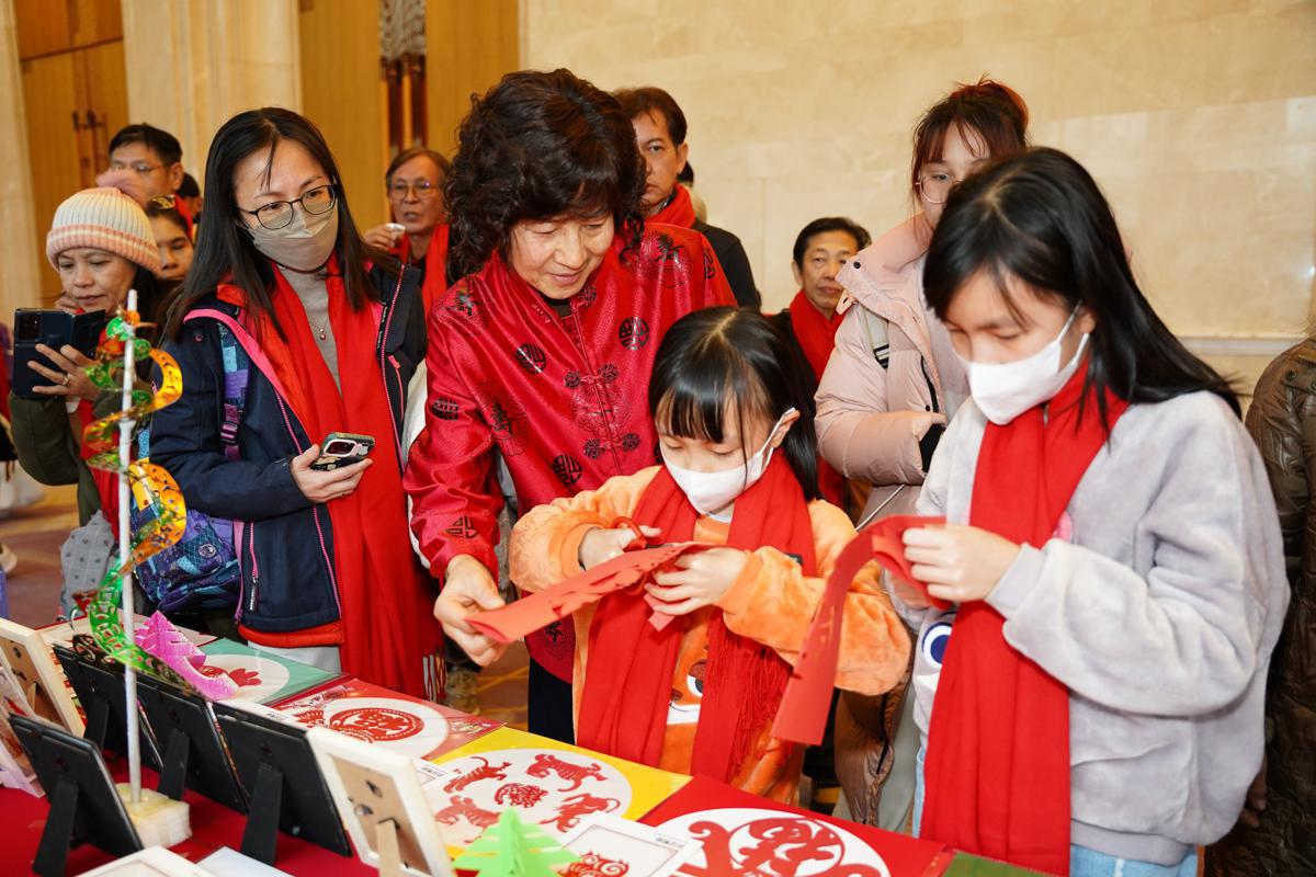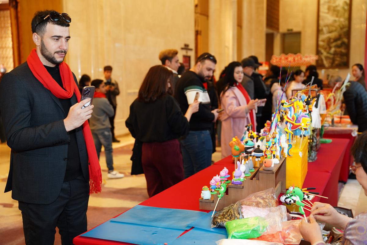 At a banquet, visitors took part in hands-on cultural experiences such as writing Spring Festival couplets, paper-cutting and dough figurine sculpting.