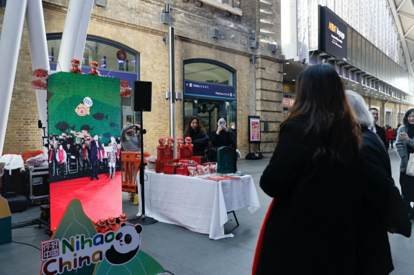 Passersby took photos with the screen and background showcasing the theme of this Chinese New Year event "Nihao! China. Let's Meet". They can wave to friends in Chongqing, thousands of miles away, through live broadcast screens and exchange New Year's greetings. They can also write digital postcards at the New Year Post Office. "It's amazing. It's my first time to see this kind of event," said a passerby.