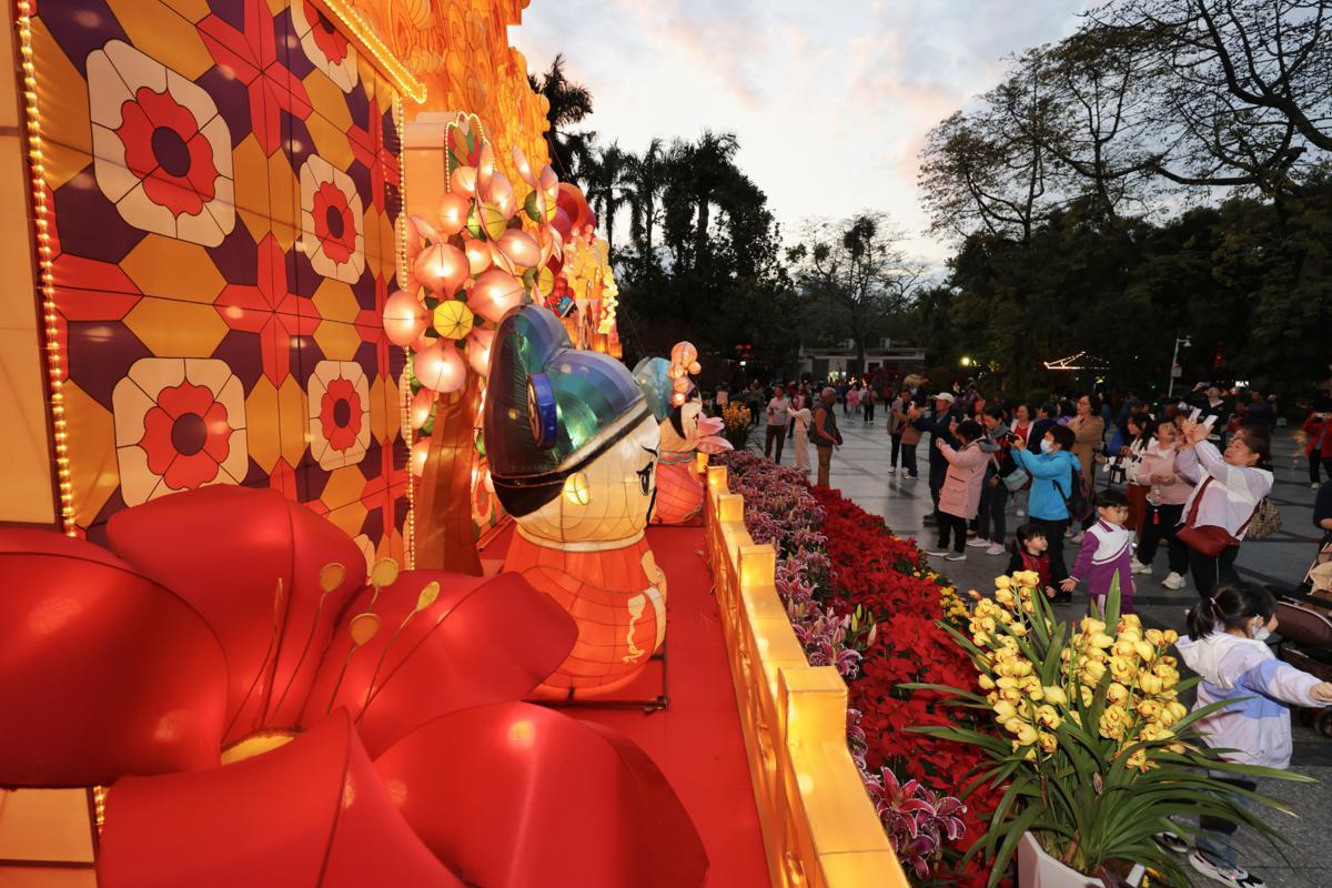 The Lantern Festival Illumination at Guangzhou Cultural Park began on Tuesday and will continue through Thursday to celebrate the festival, which falls on Wednesday.