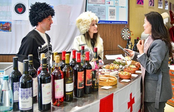 A business couple dressed in traditional Georgian attire introduced Georgian wine and performed a lively folk dance. They also highlighted Xi'an's role in fostering global trade.