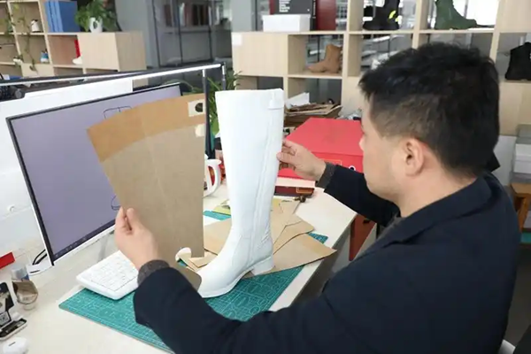 Staff of Golden Monkey Group works on ceremonial boots designing. [Photo/Haibao News]