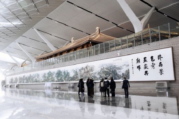 Beyond transportation, the terminal serves as a cultural showcase. Its 14.5-meter-high central hall houses a stunning 106-meter-long painting showcasing Zhongnan Mountain's beauty. Additionally, the eco-friendly reuse of 32,000 cubic meters of runway waste highlights a commitment to sustainability.
