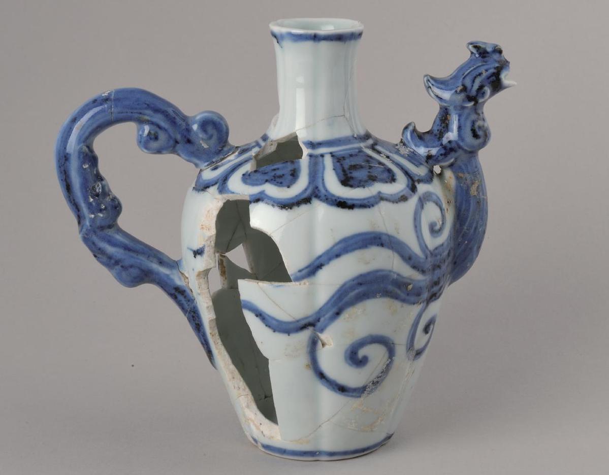 A porcelain phoenix-head ewer from the Jingdezhen ceramic industry sites in Jiangxi province. PROVIDED TO CHINA DAILY