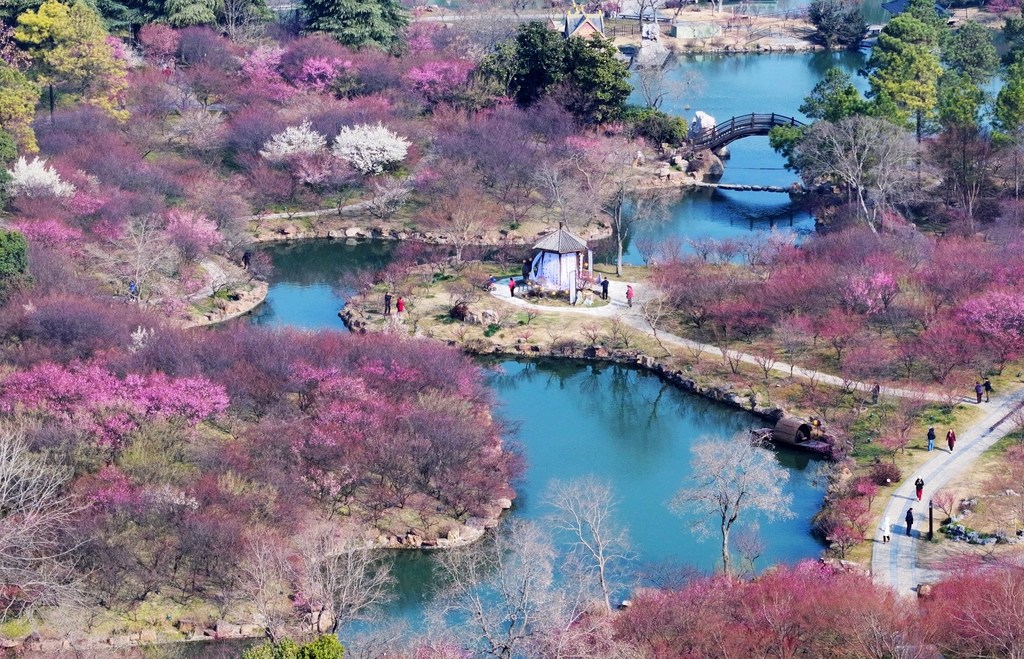Plum blossoms are in full bloom at Slender West Lake in Yangzhou, Jiangsu province. [Photo/IC]