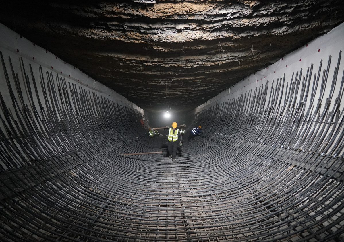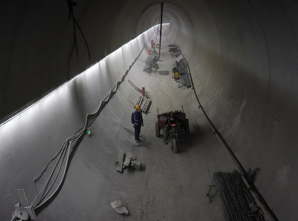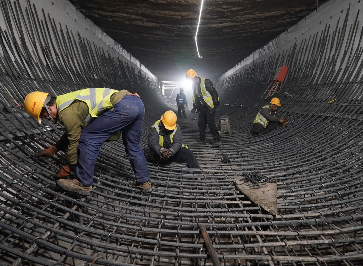 Workers carry out construction at the site of Hongmiao Station on Beijing Subway line 22 in Beijing, Feb 19, 2025. The line 22 is the first cross-provincial intercity metro between Beijing and Hebei province, with a total length of approximately 81 kilometers. [Photo/Xinhua]