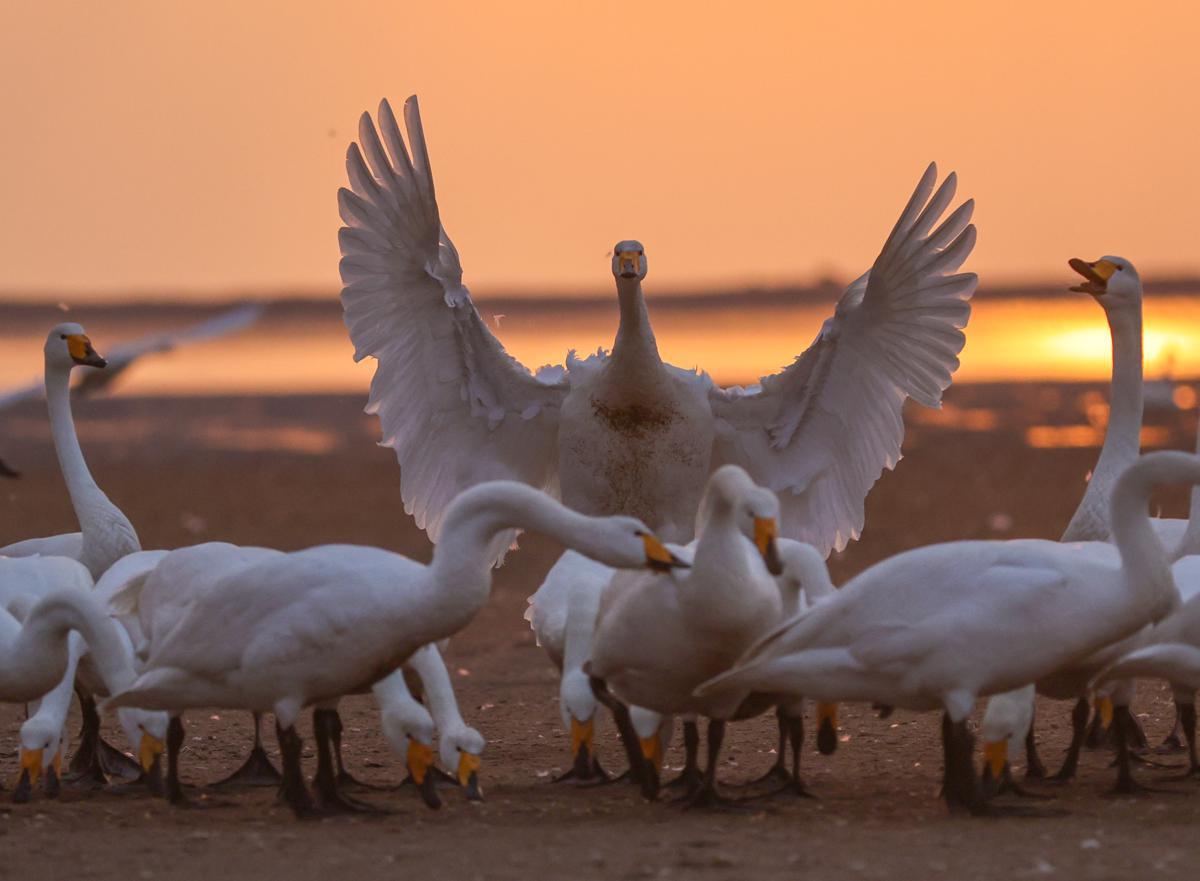 Rongcheng has attracted an increasing number of birds in recent years due to ecological restoration and protective measures. Tens of thousands of whooper swans migrate from Siberia to the coastal county to spend the winter.