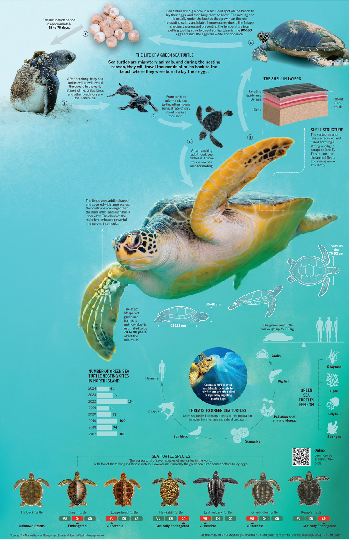 "Sea turtles have a unique habit — they return to the place where they were born to lay eggs when they reach adulthood," said Li Yupei, director of the Marine Protected Area Administration of Sansha City in Hainan province.