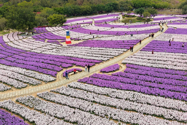 The violet flower sea at Xiangshan Mountain in Xiamen, Fujian province, attracts numerous visitors each year as spring comes. [Photo by Chen Bo/For chinadaily.com.cn]