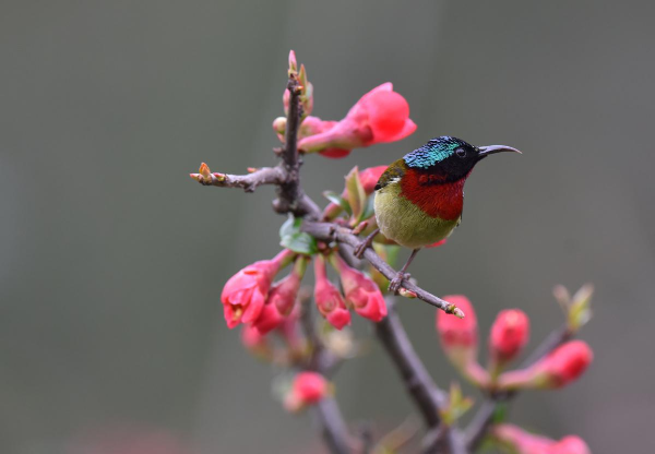 The cherry and plum blossoms in Baihe Forest Park in Fuling district, Chongqing, have burst into full bloom, attracting a myriad of birds. [Photo by Huang He/For chinadaily.com.cn]
