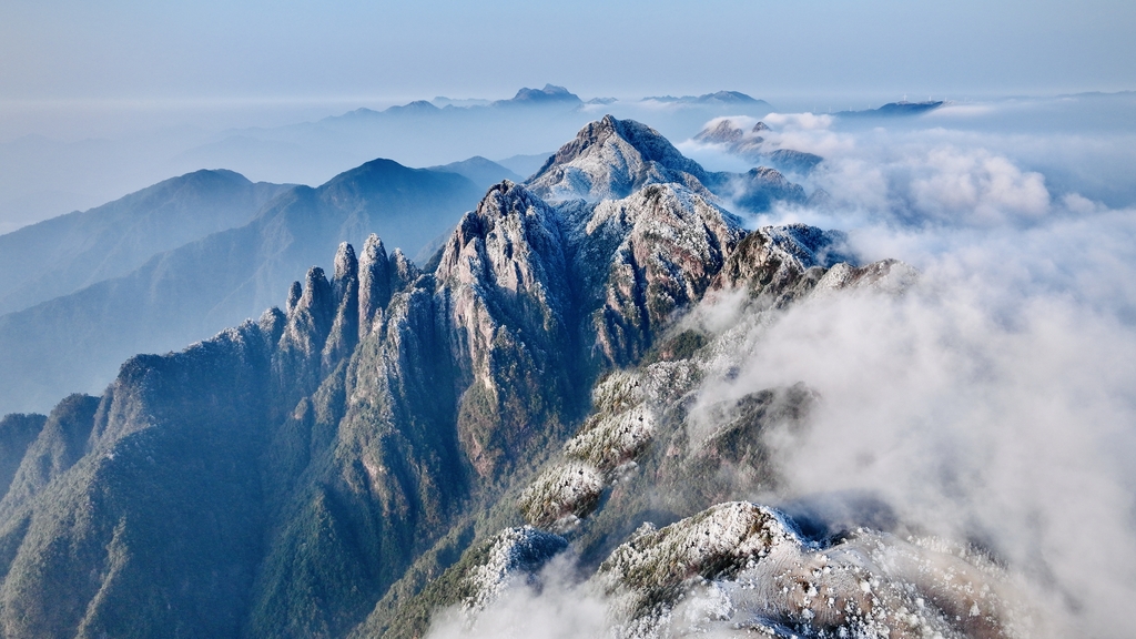 A breathtaking view of snow-capped Mount Yingpan in Jiangxi province [Photo/IC]