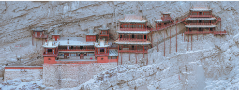 Xuankong Temple appears delicately suspended against a nearly vertical cliff face in Hunyuan county, Datong city, Shanxi province. CHINA DAILY