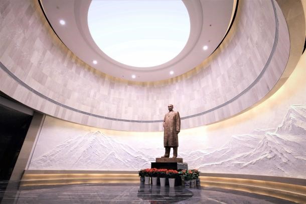 The memorial hall comprises two groups of grand architectural complexes, a memorial island, and three artificial lakes covering 400,000 square meters. The hall comprises several structures, including the memorial, the main hall, and Zhou's life performance exhibition hall, each distinguished by a solemn and dignified architectural style.