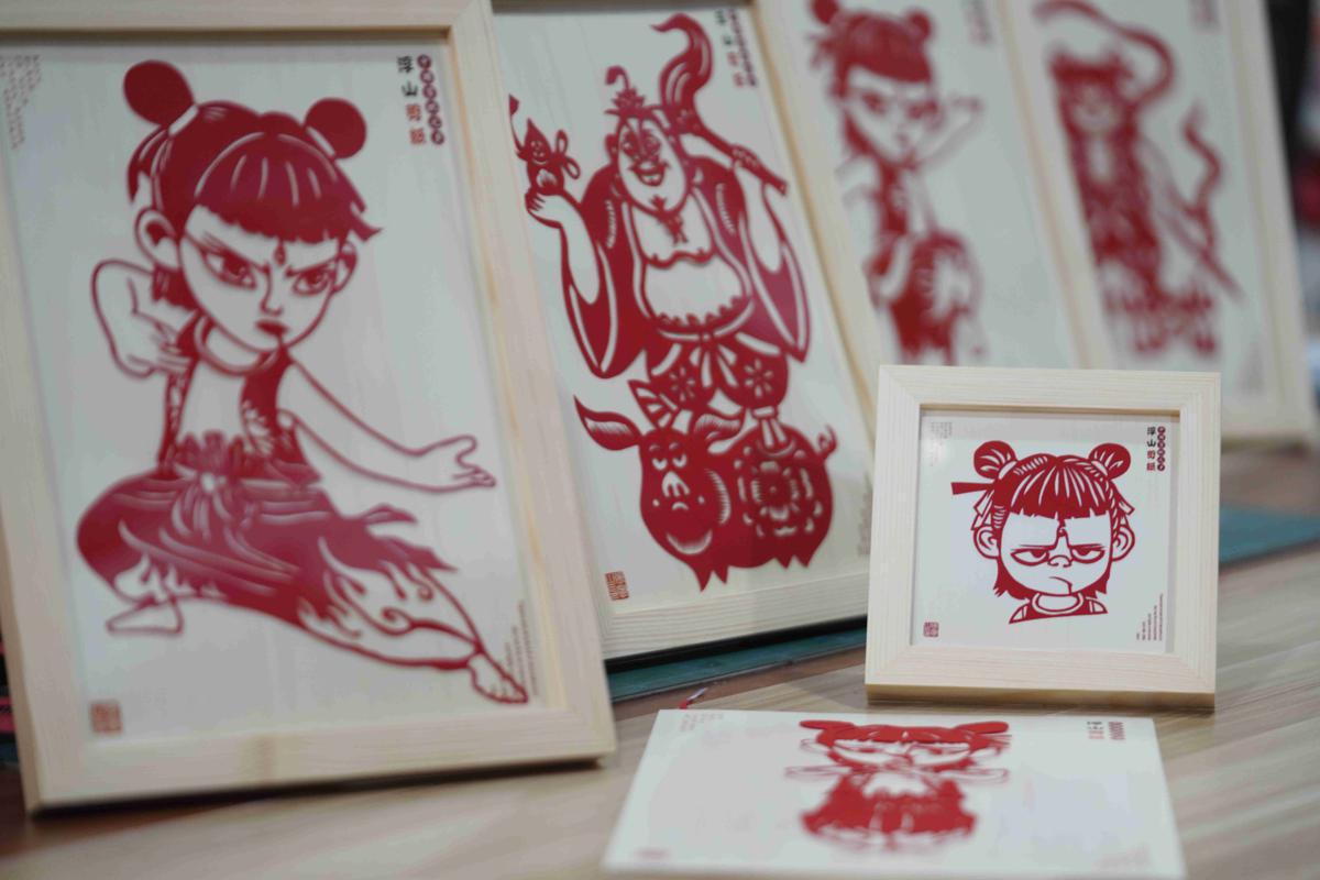 The exquisite red paper-cuttings feature the titular Ne Zha and other characters like Ao Bing and Taiyi Zhenren.